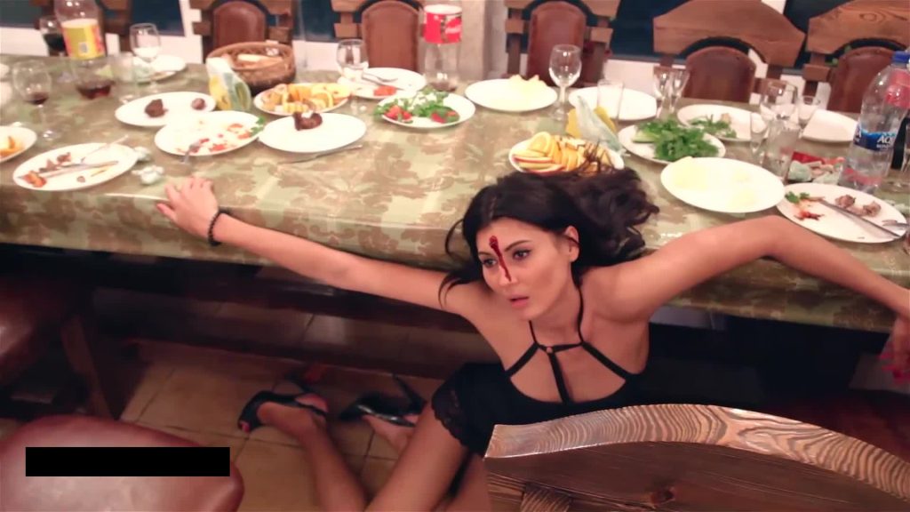 Killer comes in the apartment. He killes Nata in the shower (great scene, great falling, great agony and death scene) and then goes for his main Target – Juliana. He shoots her twice, then pushes her leg, makes her stand up and smile. He becomes more cruel and sadistic with every new death. She smiles in the agony and takes 3d bullet. She is looking at her wounds with surprise and fear. 4th bullet. She falls on the floor and takes the 5th bullet, the last one, and dies with great death stare.