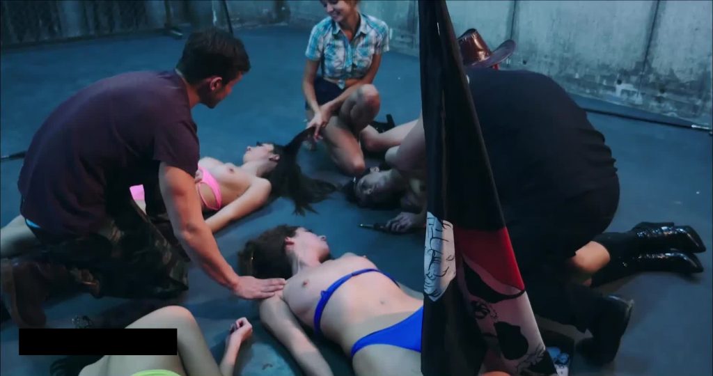 After the job they men take bodies to the room. You can see 7 girls bodypile in sexy clothes and then nude bodypole.