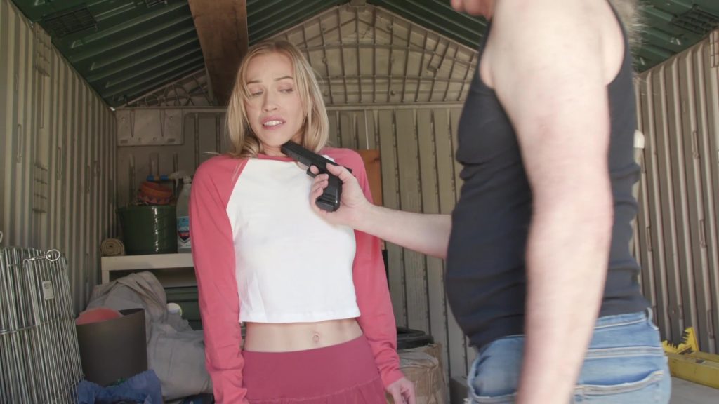 Innocent adorable Hazel looks so sexy in her cut-off jean shorts and pretty pink top. She was sent out to pay Tim for the work he’s doing, but he seems to think she’s short. Hazel protests that its not her fault, but Tim decides that its still her problem. He drags her into the shed, puts a hand over her mouth and a knife to her throat. Hazel whimpers quietly as he gropes and strips her then forces her to suck his cock at knifepoint. Poor Hazel has no choice but to obey, licking and sucking his cock and balls until he finally shoots a massive load all over her face. He leaves her there, filthy, half-naked, wide eyed and trembling in shock.