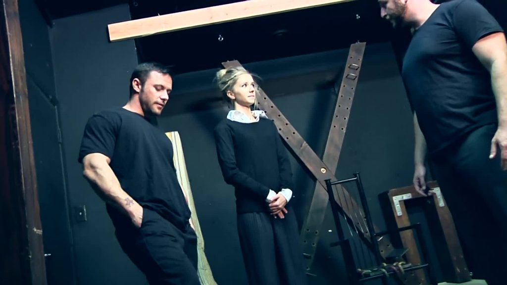 Finished, they splash water on Rachel’s face, causing her to awaken to a cattle prod shocking her body and the incessant questions from her trainers. They tickle her, her laughs filling the chamber, the sensation to reach out impossible with her bound hands. They feel see has deserved a little break, untying her and giving her some water to drink. There is but one more exercise to complete, a strangulation test. The trainer grabs a rope and begins strangling Rachel. She struggles, coughing and clamoring for just a single breath of air. But the test is not ending as quickly as she would like, the danger becoming all too real as she realize she is being strangled for real.