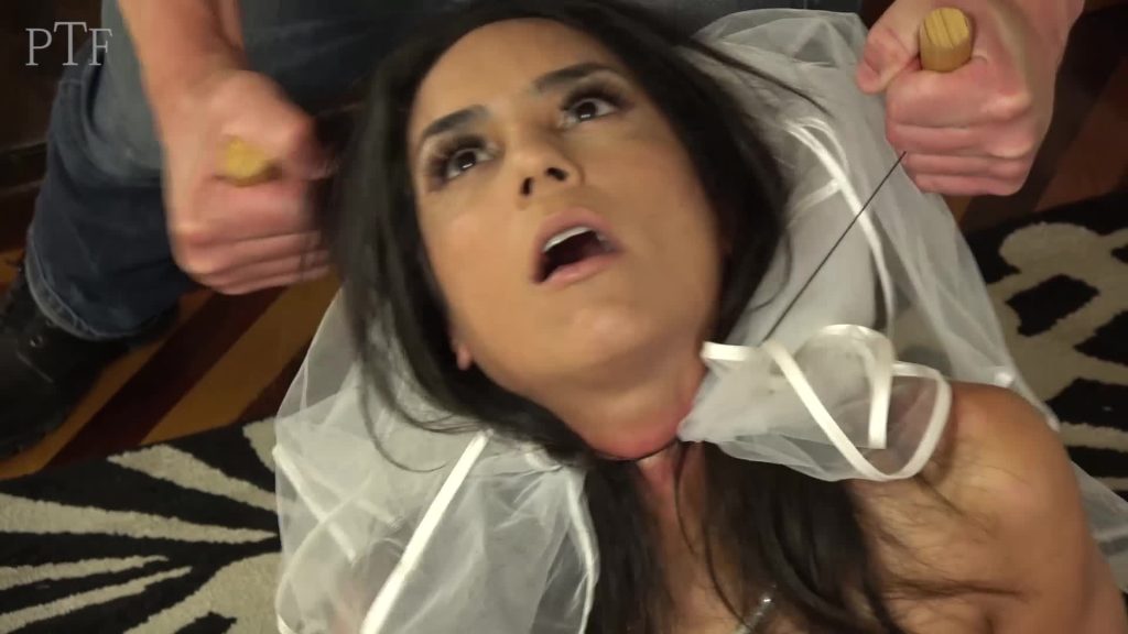 Ariana, dressed in white, admires herself in the bedroom mirror. Turned on, she pleasures herself to a climax, and at its height Joshua surprises her with chloroform, making her unconscious. He cuffs her, wraps a wire around her neck, and when she comes to, he strangles her while fucking her. She breaks free, but only makes it to the living room. He catches her, pins her upright, and fucks and strangles her more.