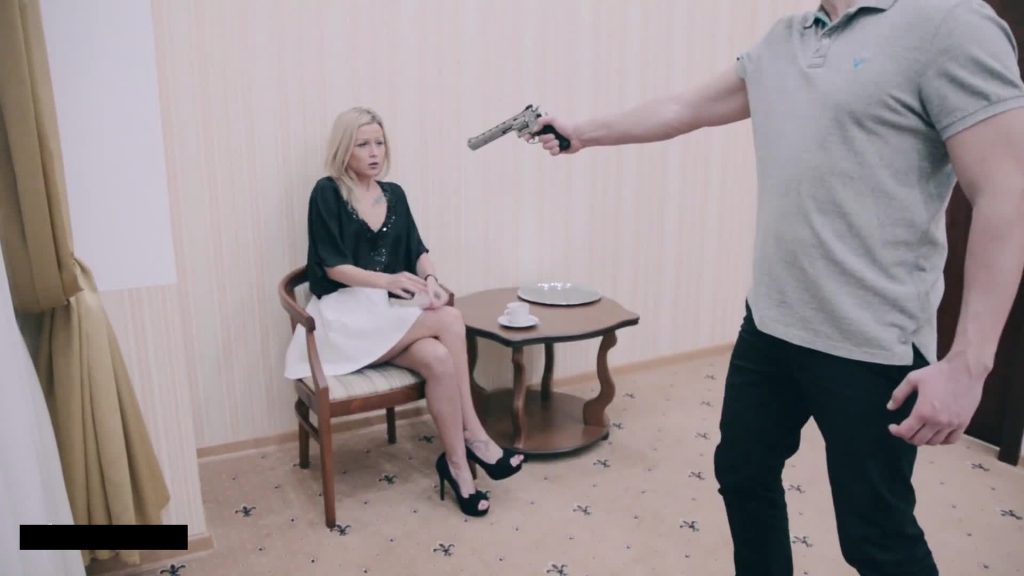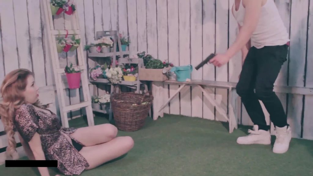 He kills Oksana by headshot (long, super sexy, grotesque headshot scene). Than he shoots Katya to her stomach, to her chest and to the back (sexy long shooting scene with nice pain and surprise reaction and exotic button-up death pose, blood effects + animated blood effects).