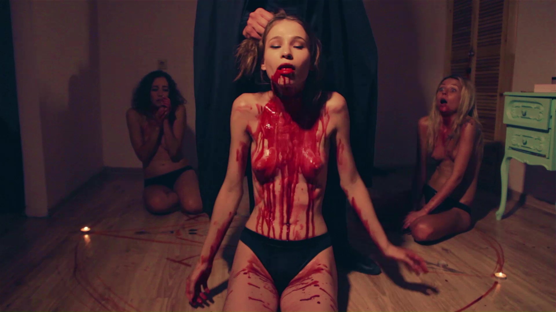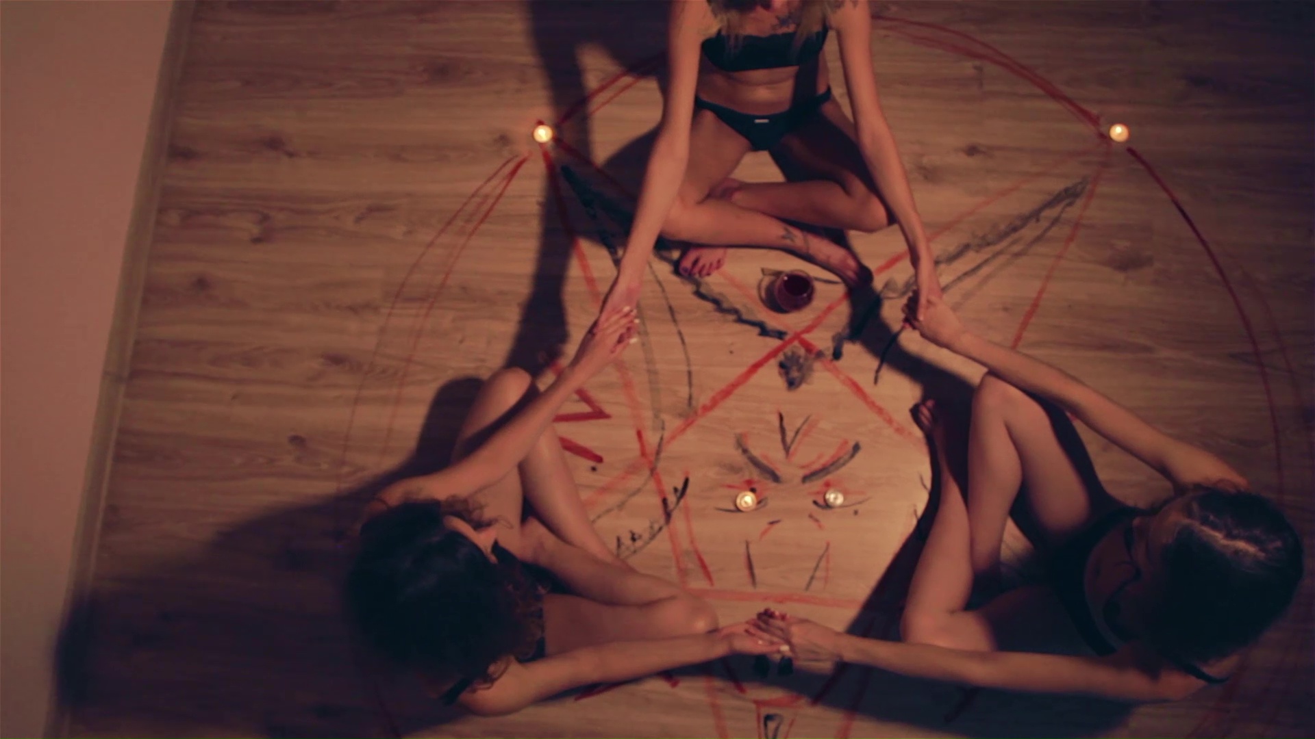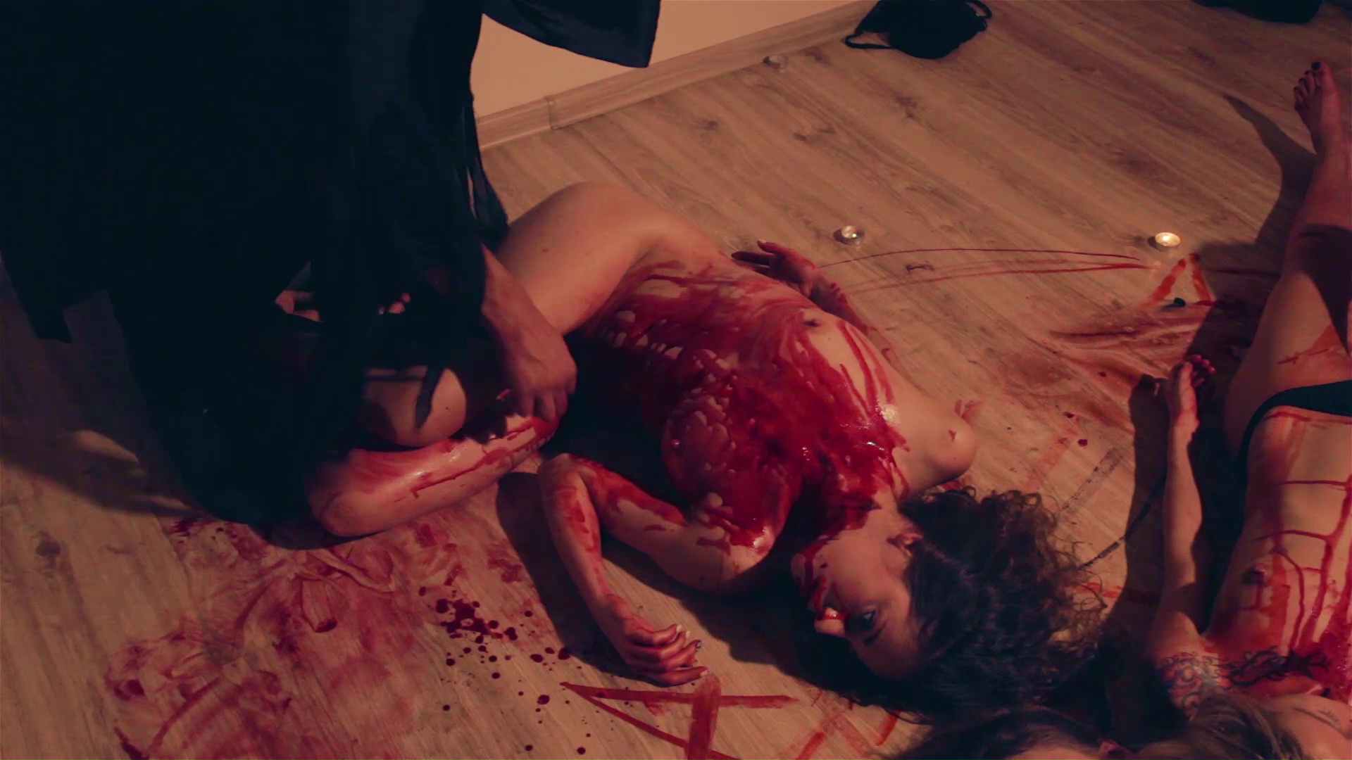 Three sister decide to play dangerous game and invite Satan to their house. They read in satanic book how to do it. They stripped topless, cut hands and slashed blood to their bodies. Their read special spell but did it incorrectly, so they called not Satan but Evil Spirit who slept all the time in their attic. The spirit of Demon came to them and cut their throated like pigs. It was too late to beg him leave them alone, too late. He killed them with a knife very brutal and stripped full nude to leave their nude bloody corpses on Devil Star.