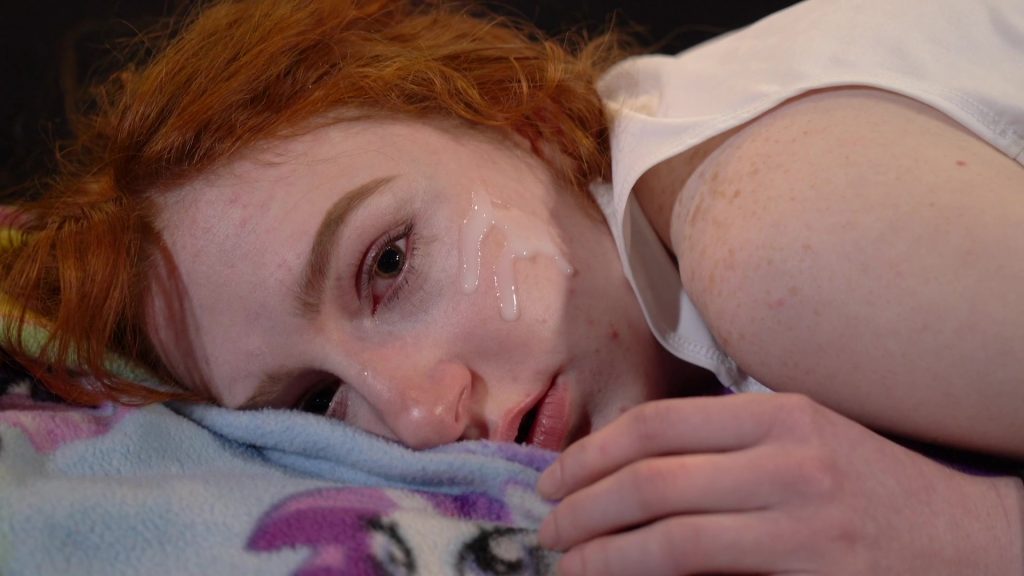 After a while, he flips her over and machine-guns her several more times in the pussy/ass region. Then he fucks her some more until he cums on her back and face. Finally, he machine-guns her in the head then leaves her posed and defiled.