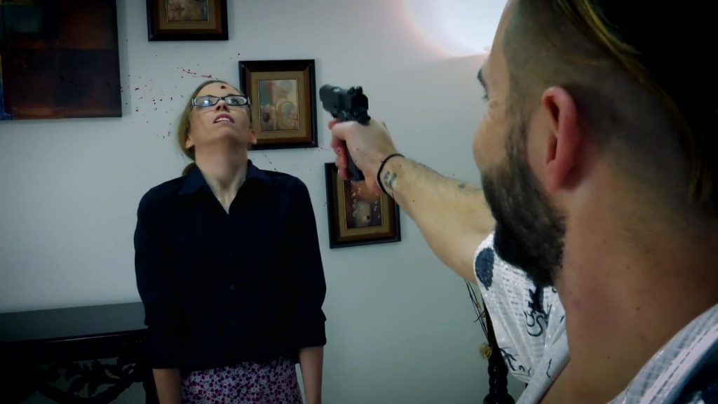 As she winds down, a knock comes from the door. The man identifies himself as a friend of her sister’s, claiming he has something important for her. Being kind to the unsuspecting guest she let’s him in. Before she can offer the man a drink, he attacks her and drags her to the couch. The man violently forces her to suck his cock, first on her knees before pushing her on the floor to her back and skull fucking her face. She cries and begs for him to stop as he demands to know where his missing drugs are.